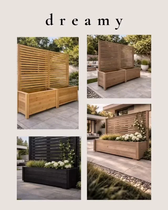 Elegant planters with trellises provide a stylish alternative to plain fencing. These customizable, mobile dividers are perfect for separating outdoor spaces while adding charm and flexibility.