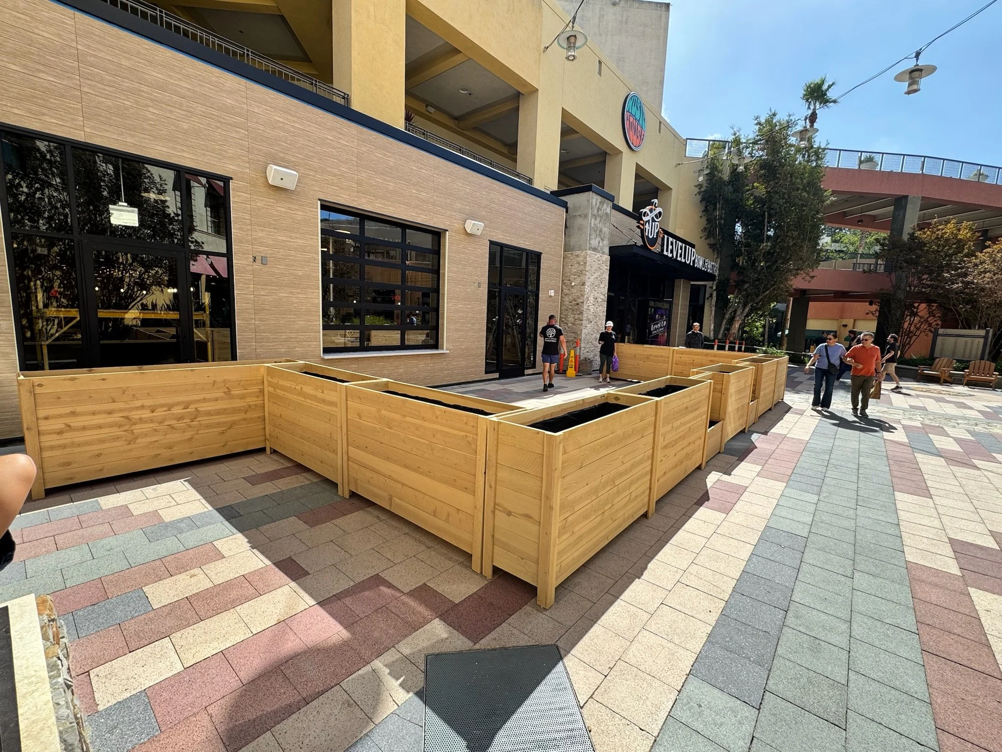Handcrafted, durable wood planters designed to define spaces, add privacy, and elevate storefronts, patios, and commercial exteriors.
